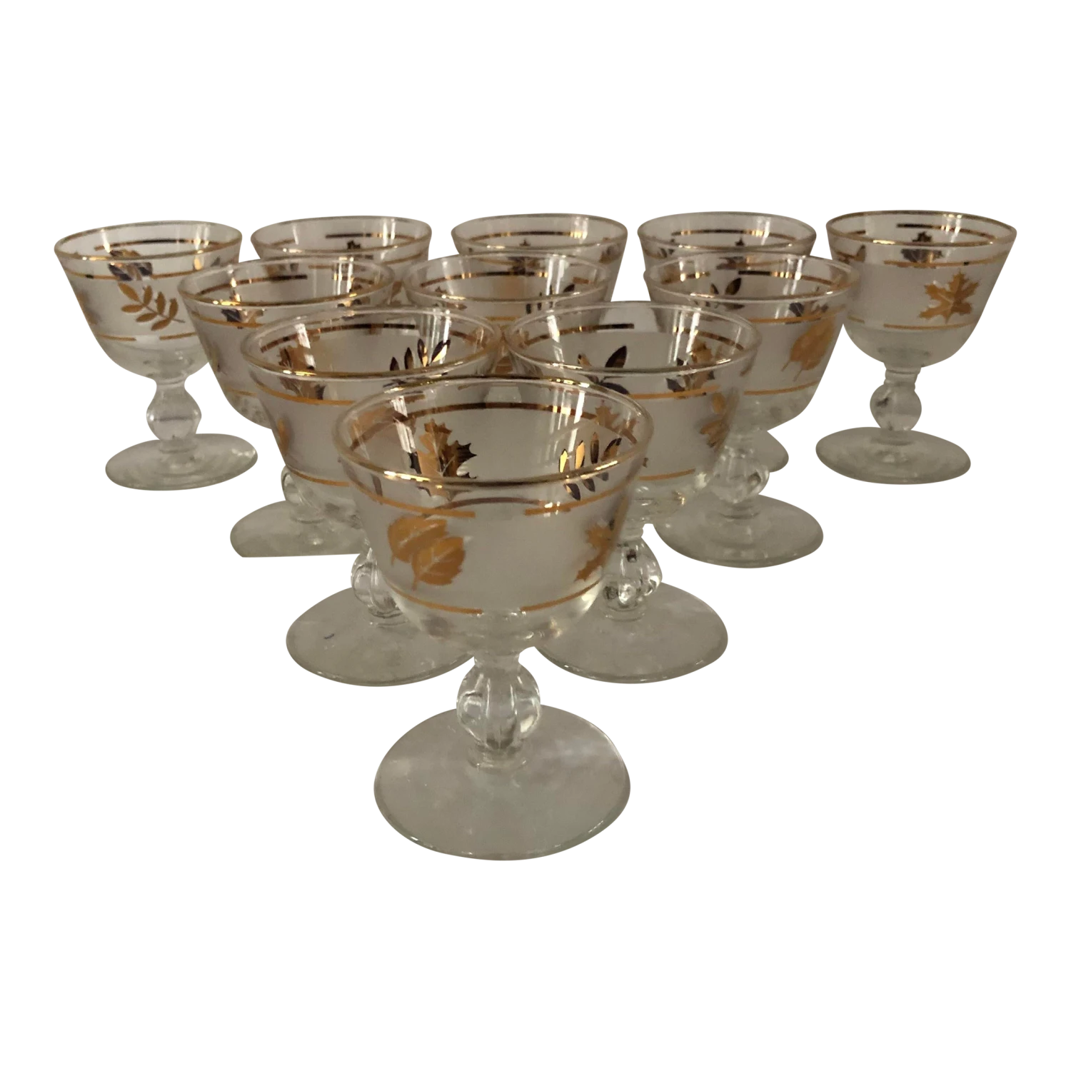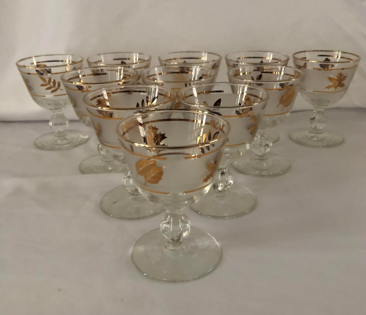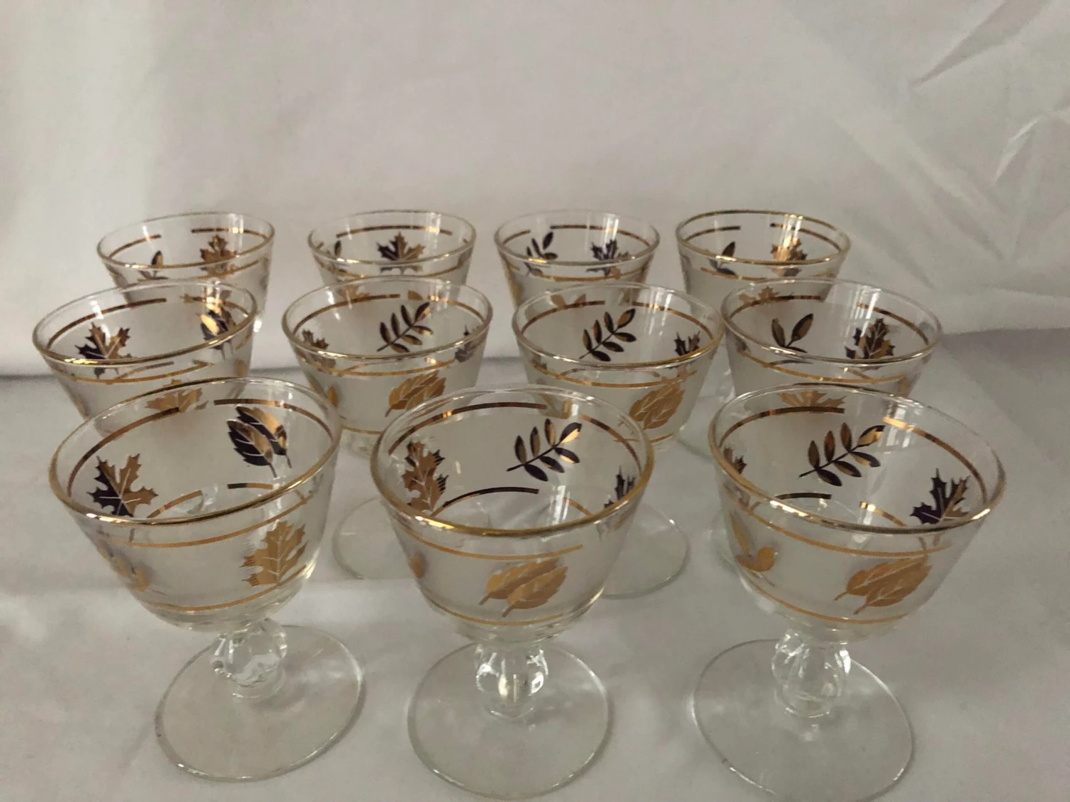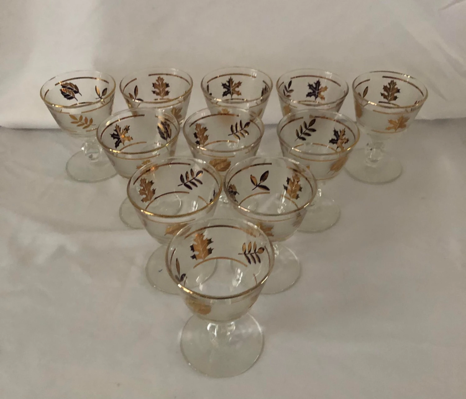 Looks to never have been used , a Mid Century set of Libbey “Golden Foilage ” wine glasses.