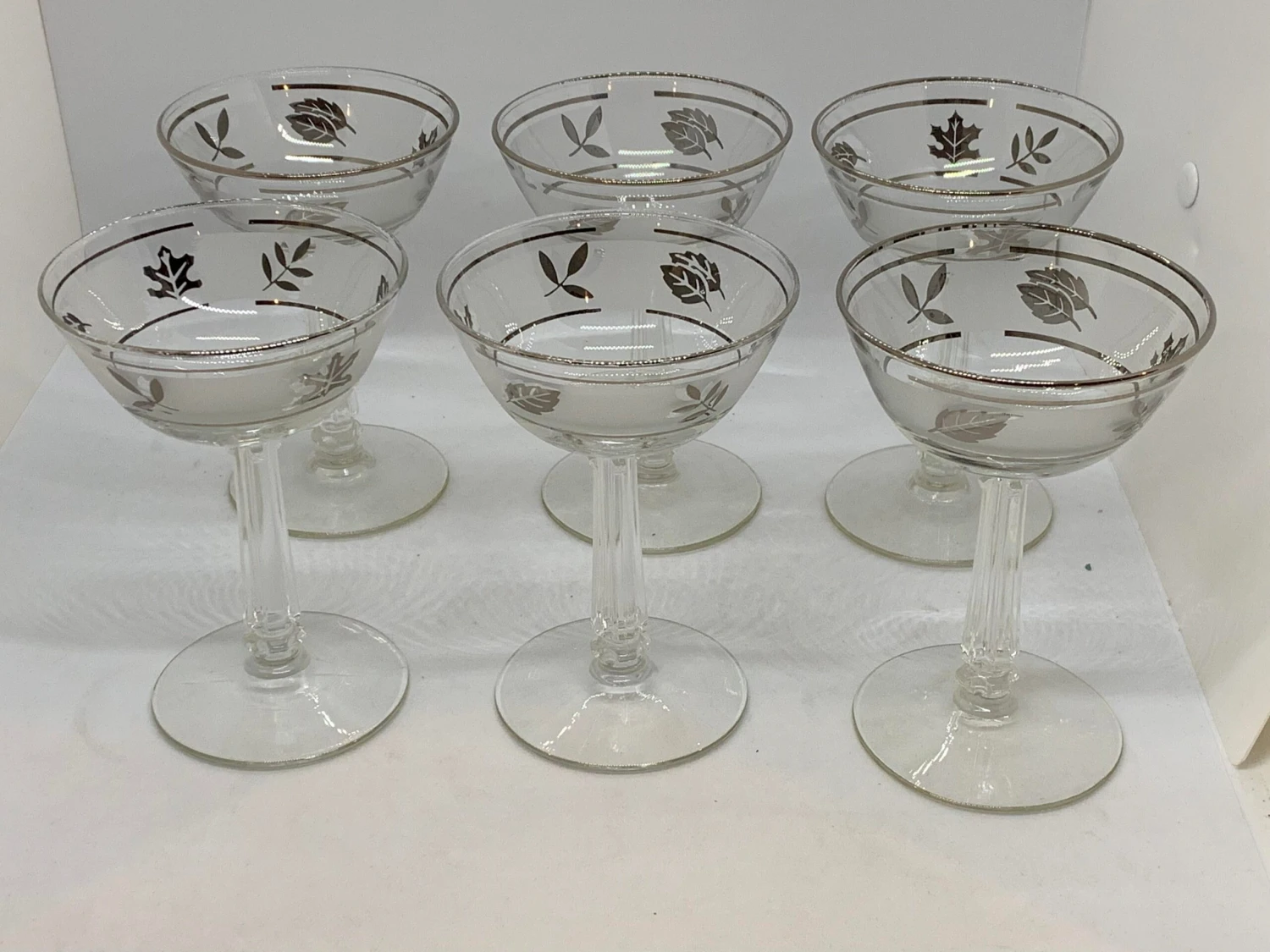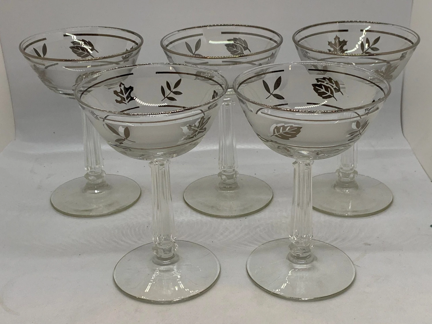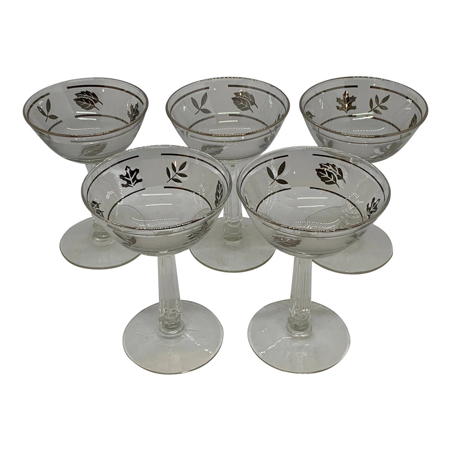Libbey Silver Foliage Champagne Coupes Set of 5 Double banded Platinum rimmed
