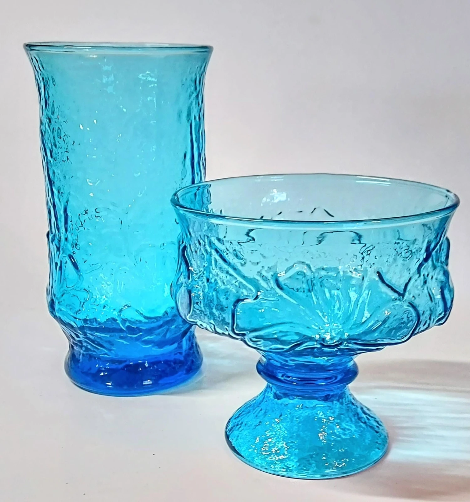 I adore these hippy skippy coupes with their whimsical flowers in relief. I have other pieces listed seperately in my chairish store- please check pictures to see reference sizes.