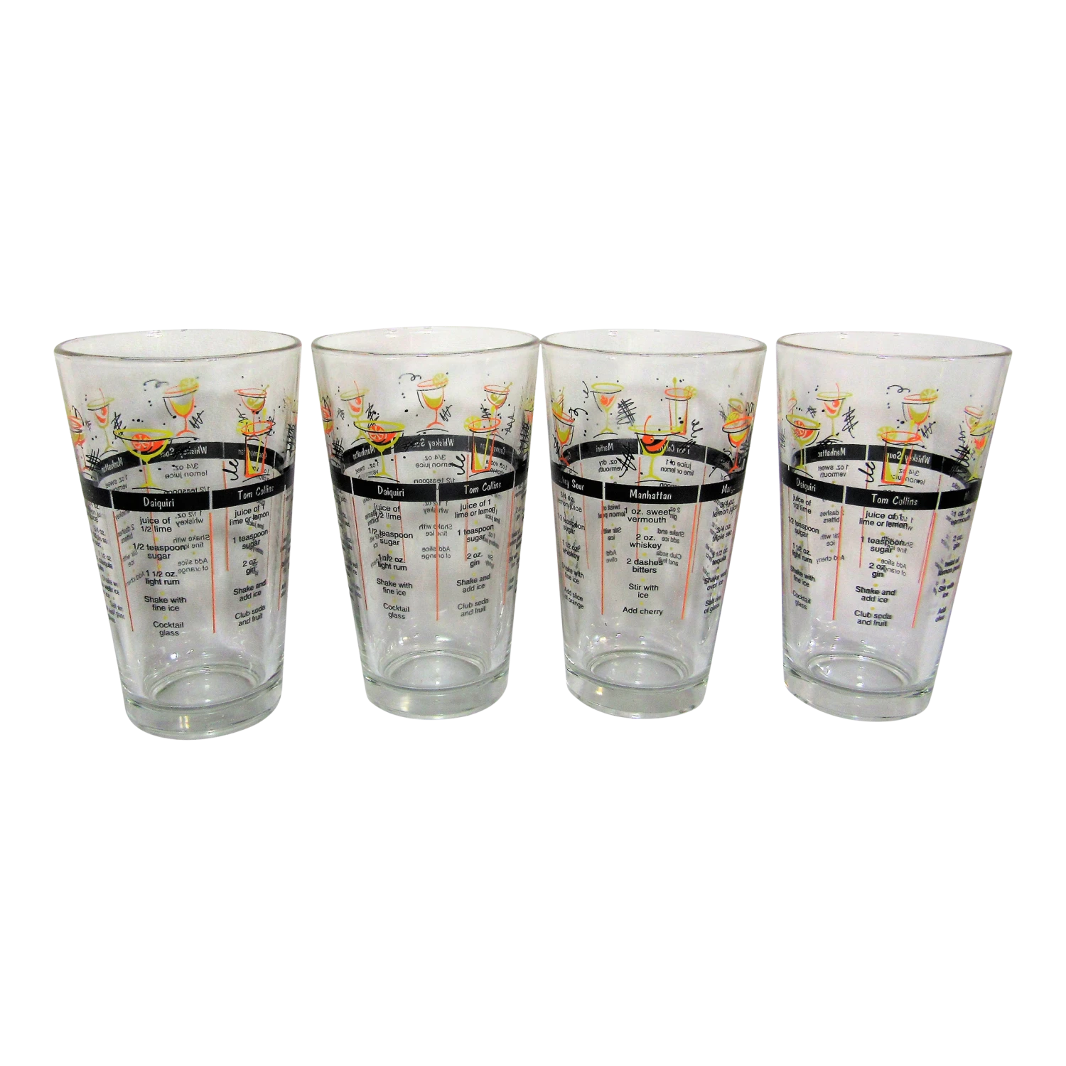 These are so much fun. Recipes for drinks right on the glasses. 6″ tumblers, set of 4. No damage, no cracks or chips. Mid century Libbey .