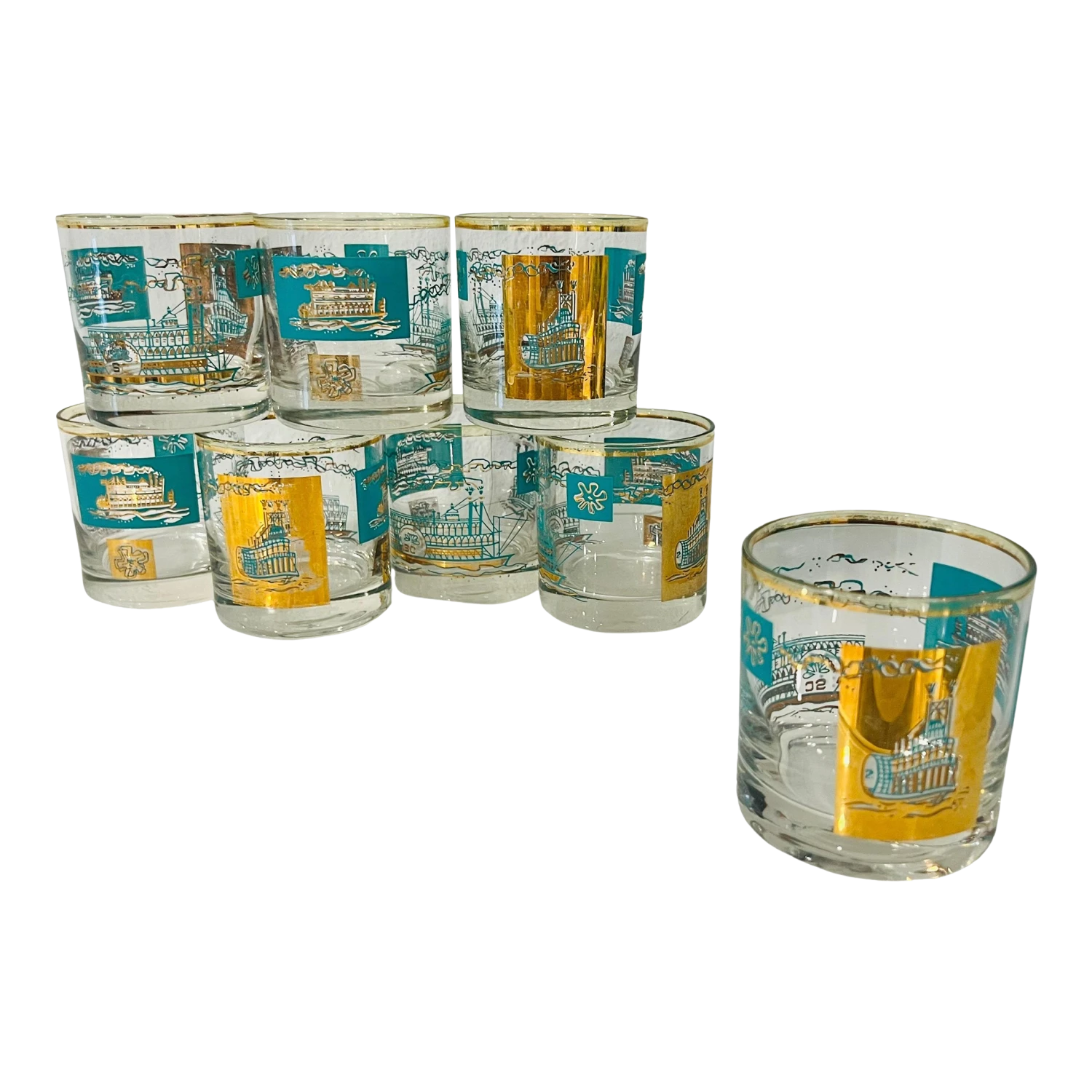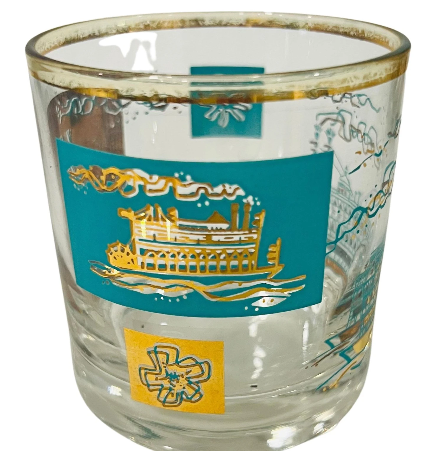 Set of 8 1960’s-1970’s rocks glassware with a Southern motif made by Libbey Glass Co for Southern Comfort.