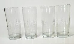 1960s Libbey Starlyte Mid Century Modern Frosted Silver Leaf Tumbler Glasses In Caddy Set- 11 Pieces