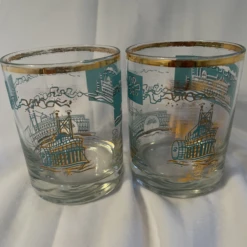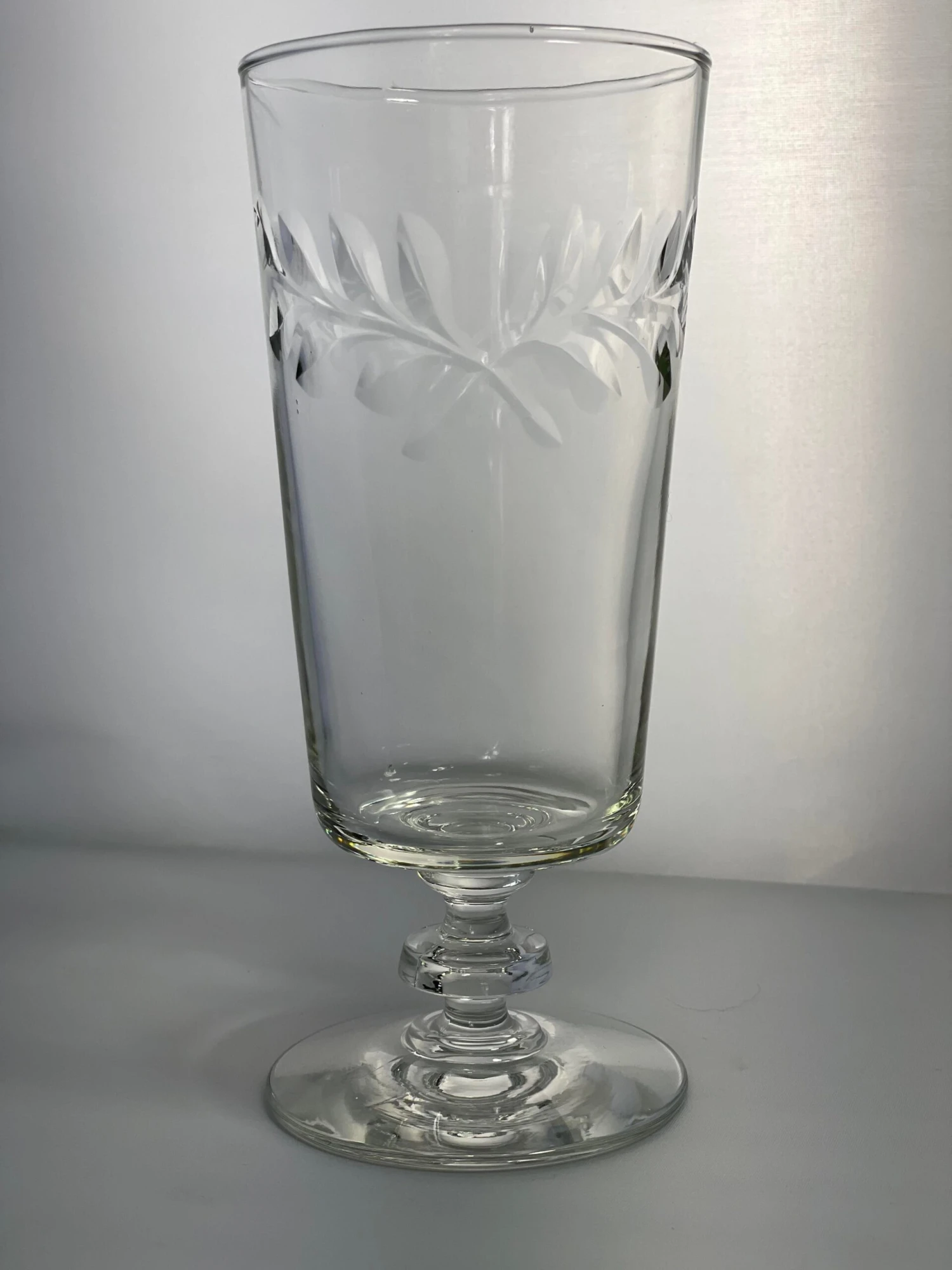 Vintage Victoria pattern ice tea glassware by Rock Sharpe (1948). Mid century design features cut leaves on a blown glass …