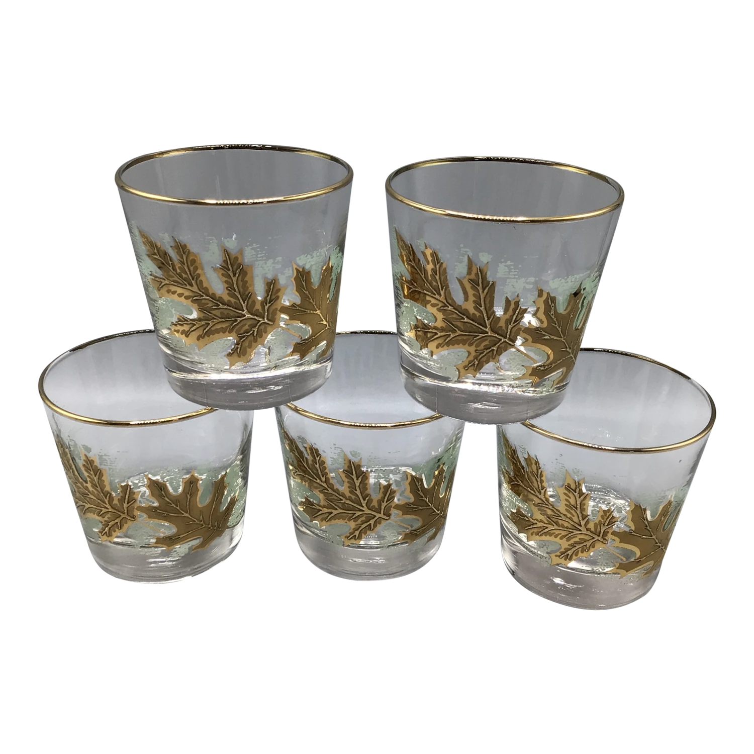 22 kt gold oak leaf old fashion glasses with the Libbey mark on the bottom. The 22kt oak leaves are …