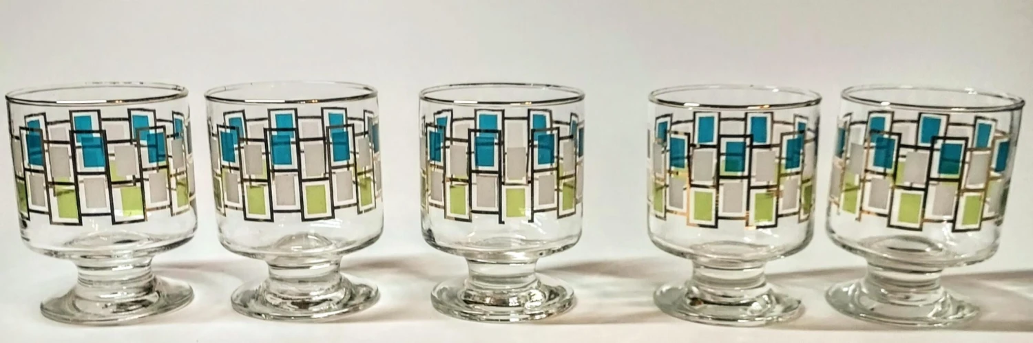This set of gorgeous water goblets have a modernistic stained glass effect trimmed in flawless gold. I have other pieces …