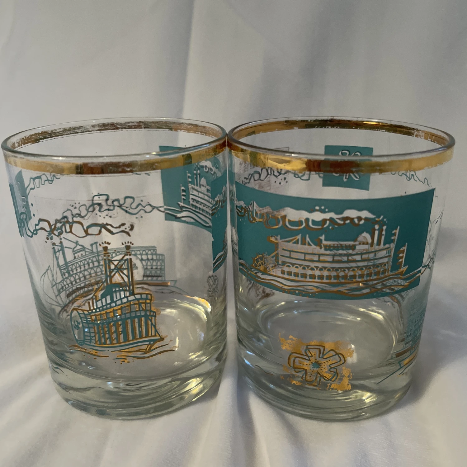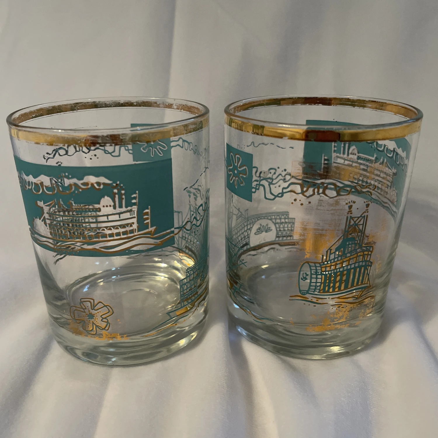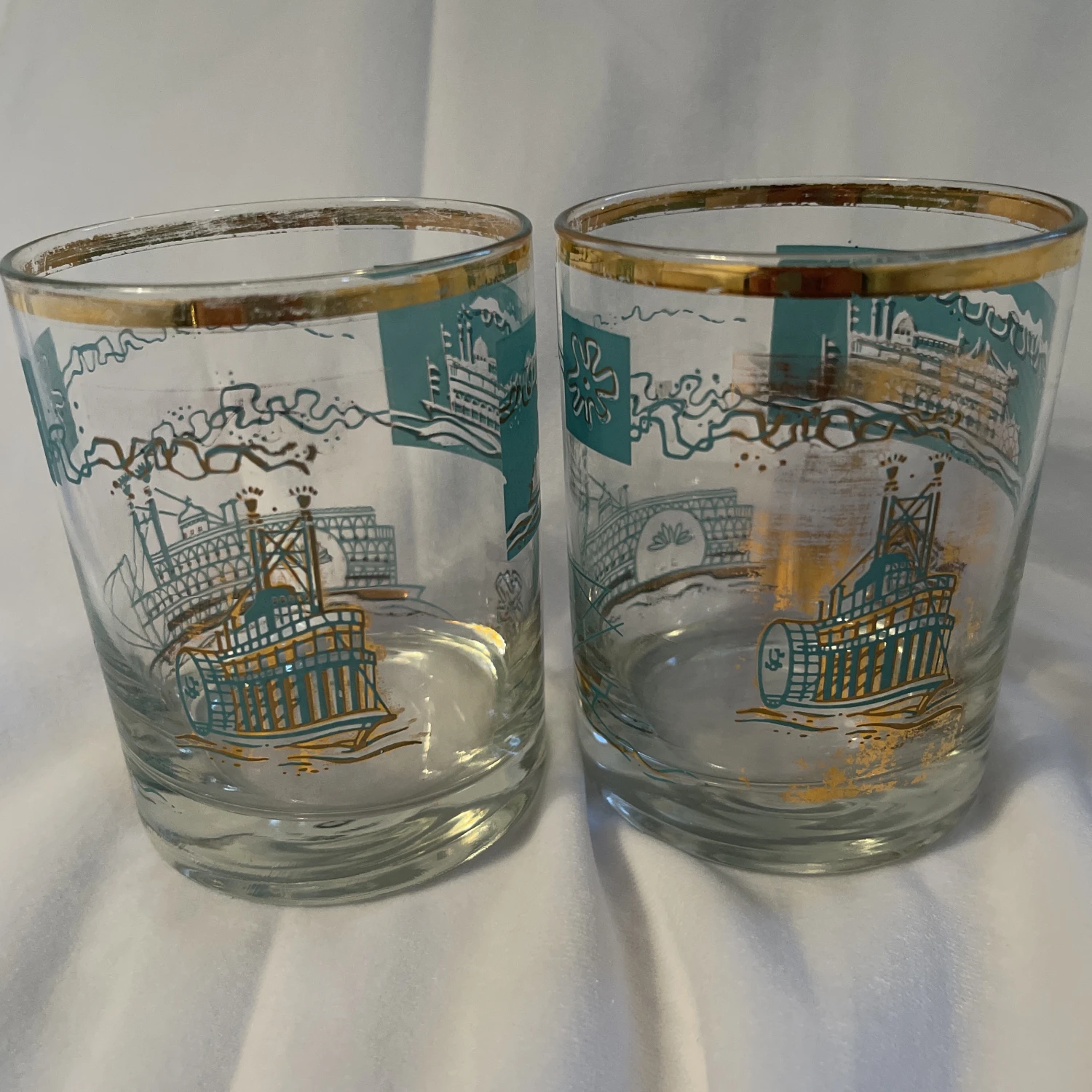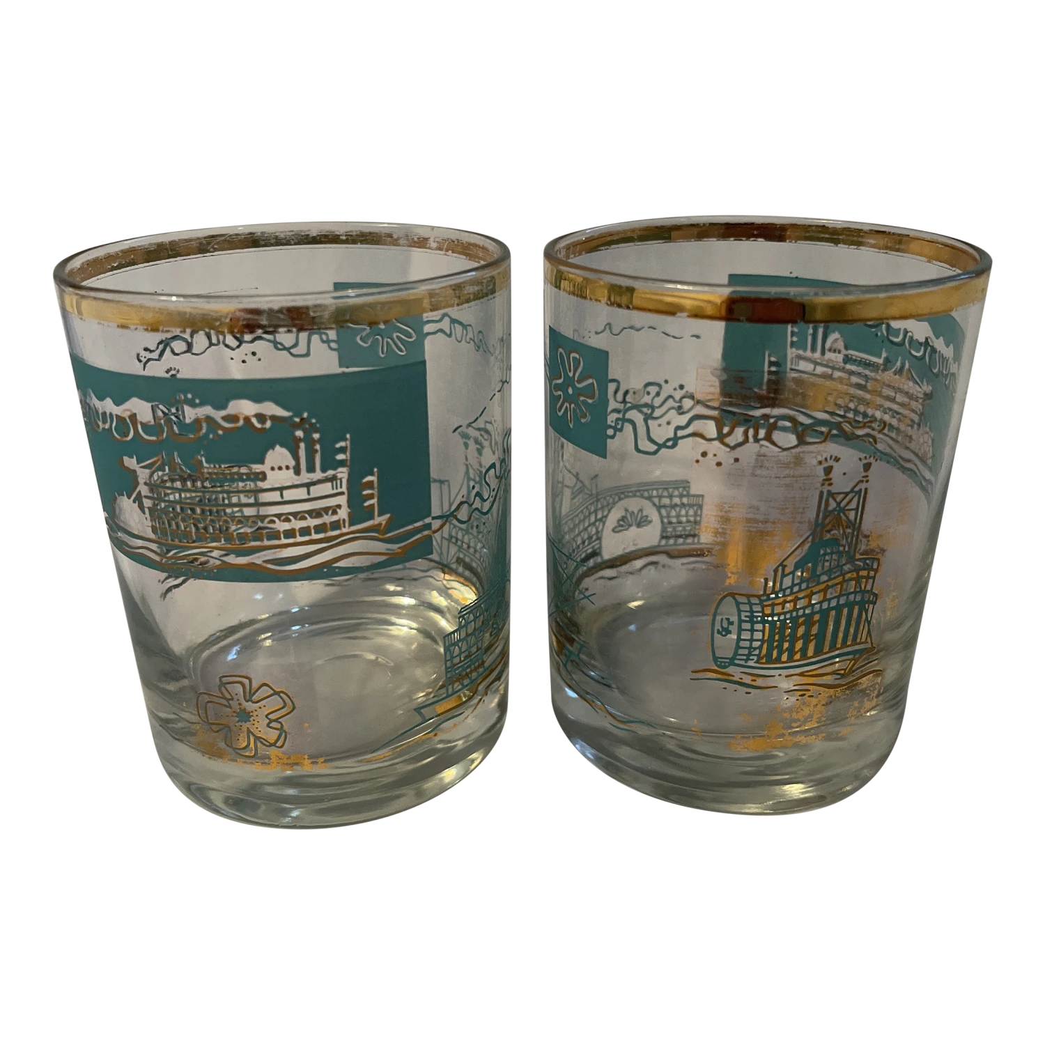 Vtg MCM Libbey Southern Comfort Whiskey Steamboat On Rocks Glasses – set of 2.